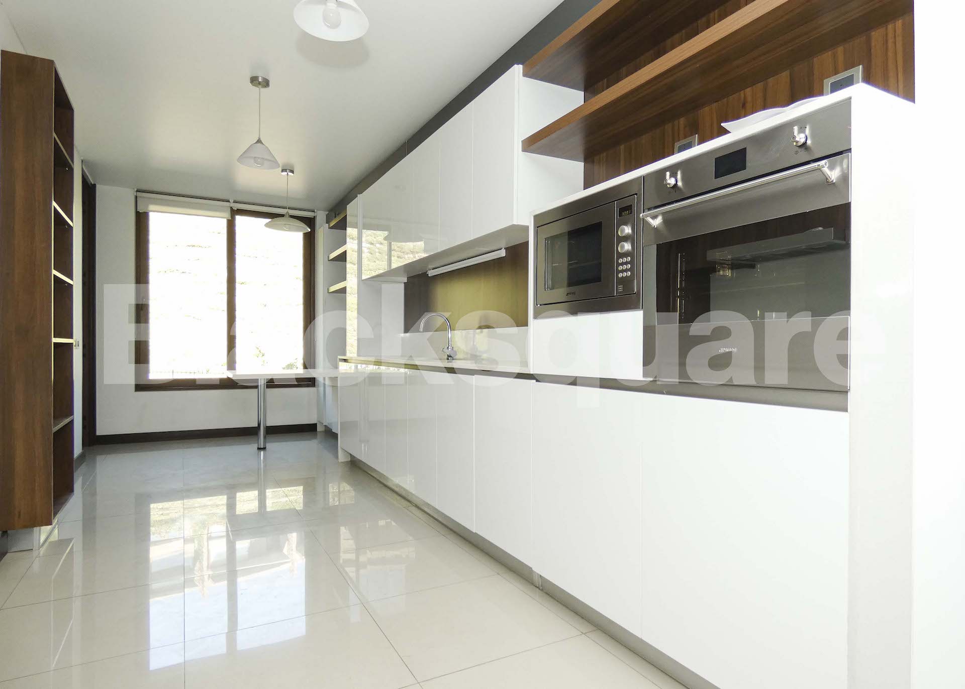 En cuanto a sus terminaciones, tiene piso flotante en living comedor, alfombra en dormitorios, porcelanato en terrazas y, cerámica en cocina y baños. Las ventanas son de termopanel con marcos de PVC y calefacción por losa radiante.
